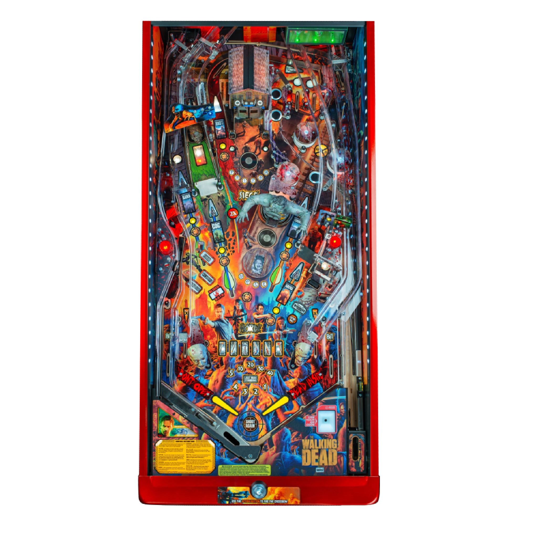 Extra care and attention to detail have gone into every facet of The Walking Dead Remasteredhonoring the original masterpiece by John Borg and Lyman F. Sheats, Jr. The game includes an updated version of the revolutionary ruleset that introduced a new mode structure and risk-reward elements that have stood the test of time. Through the iconic Prison, Well Walker, and Blood Bath multiballs and the depth of each Dead Feature mode (Barn, CDC, Riot, Tunnel, and Arena), players are immersed in a pinball battle that can ultimately leave a “Last Man Standing”… that is, if you’re able to survive the Horde and escape Terminus along your adventure.